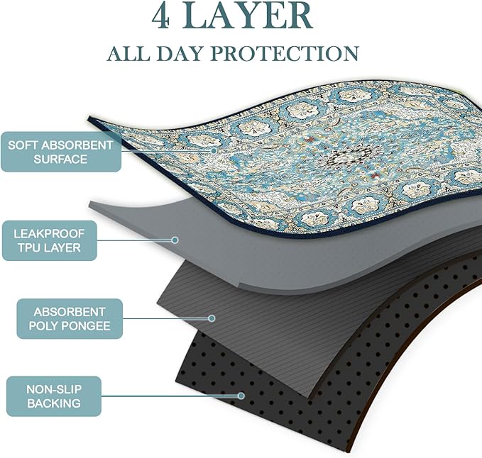 - 【FAST ABSORPTION & LEAKPROOF】 Pee Pads For Dogs are made up of four layers material, Super soft absorbent Coral velvet surface, 12 hours impermeable, Super absorbent Coral velvet surface, breathable leakproof TPU and absorbent pongee with non-slip rubber. These non-slip puppy pads can immediately absorb water to protect your floor or carpet from the odor of dog urine stains and create a clean and dry home for dogs.