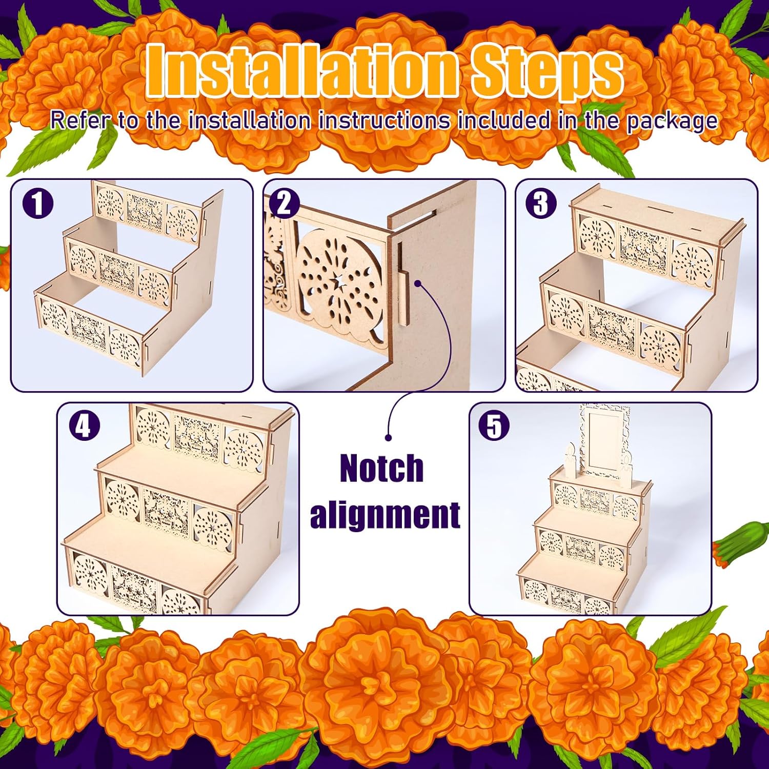 🛠️ Easy Assembly – Comes with step-by-step instructions. Panels fit securely with a little pressure, and for extra stability you may use wood glue. Designed for repeated use each Día de los Muertos season.
