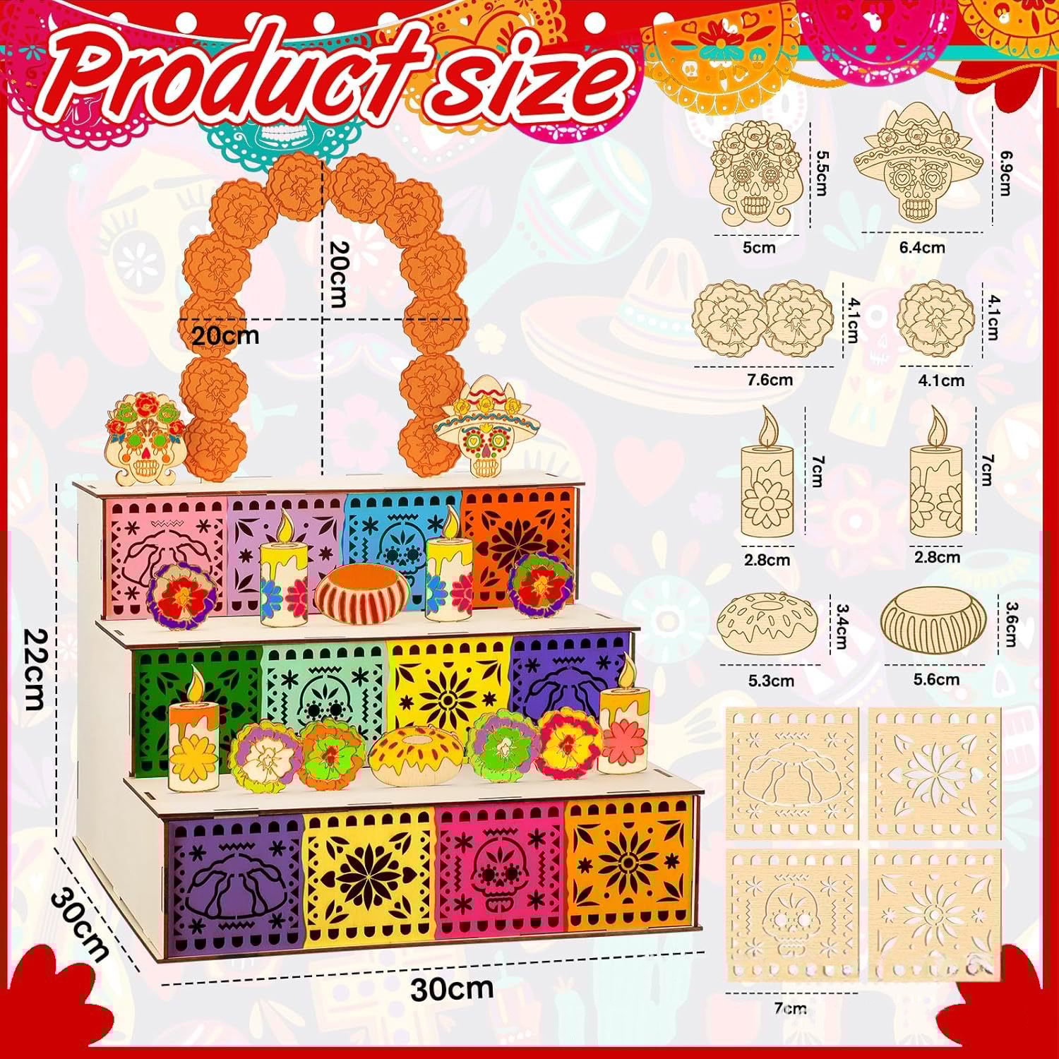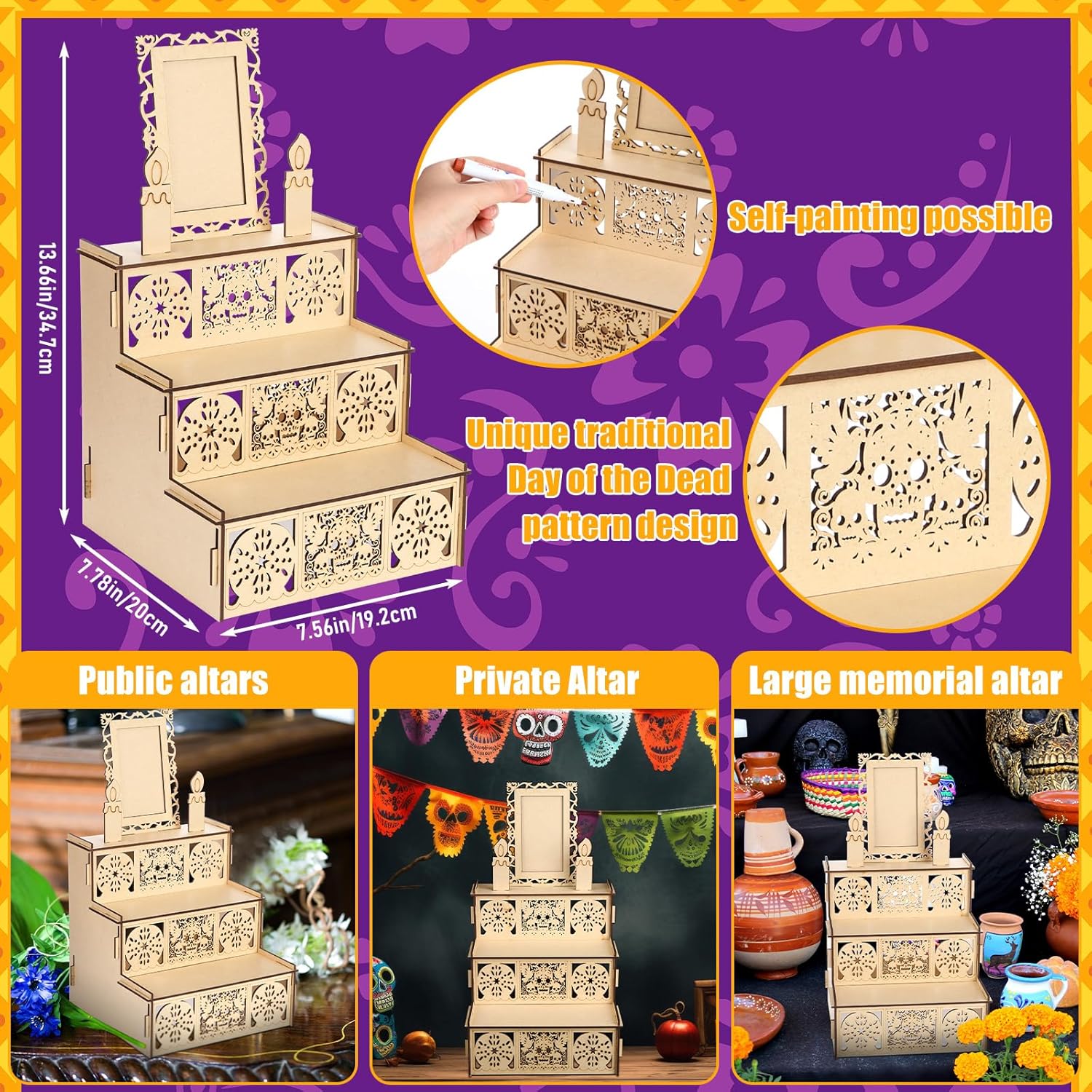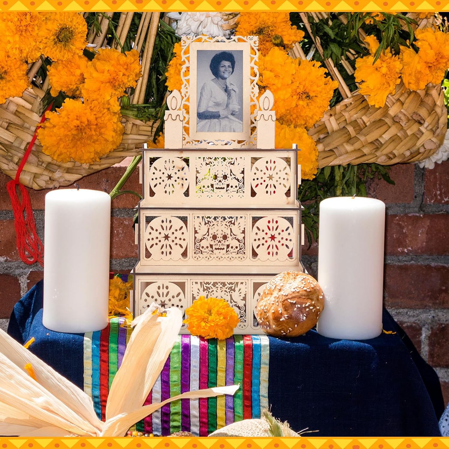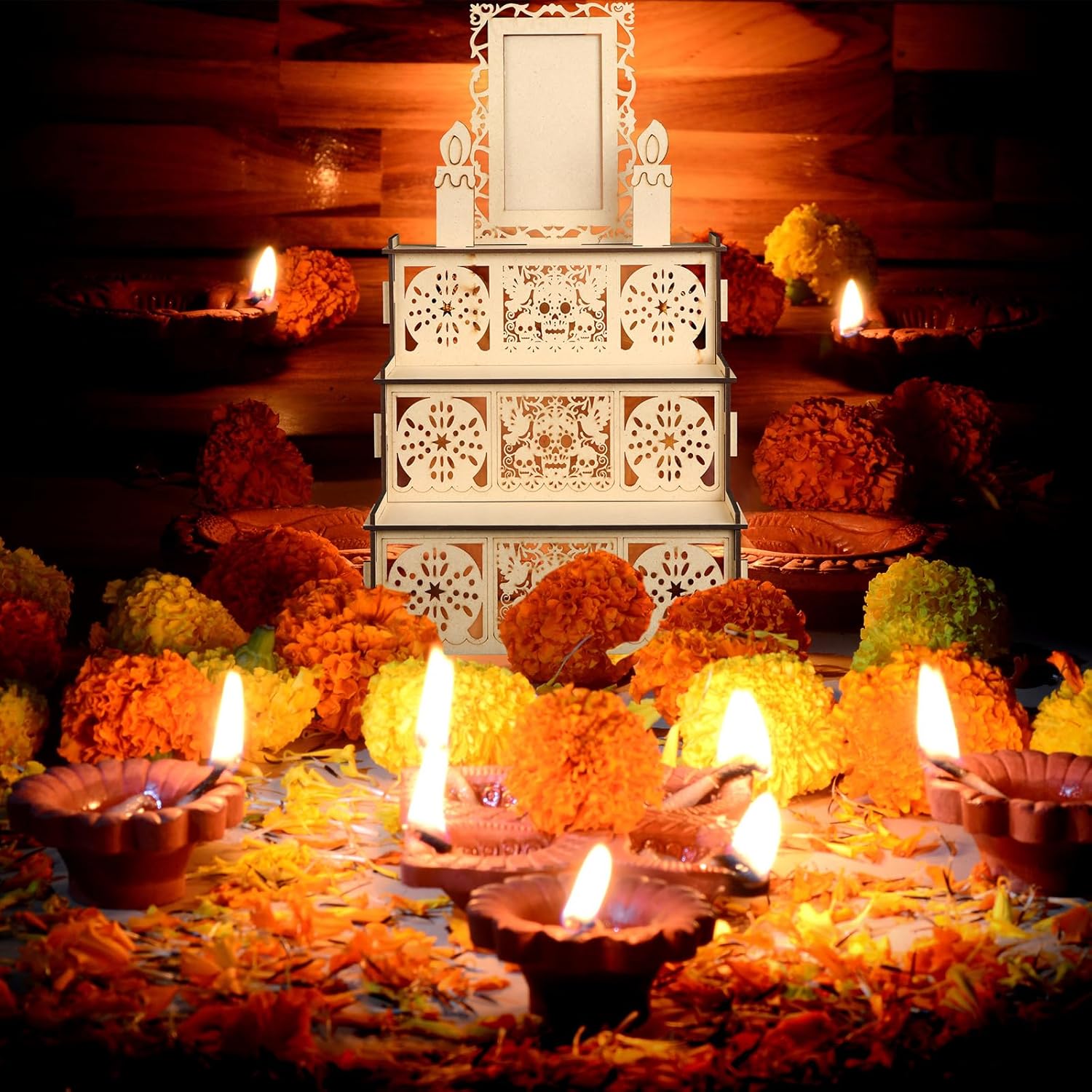 📏 Ideal Size – Measuring 7.56" W x 7.78" D x 13.66" H, this altar offers plenty of space to display photos, candles, marigolds, and the favorite items of your loved ones. Includes 14 wooden panels for a complete setup.