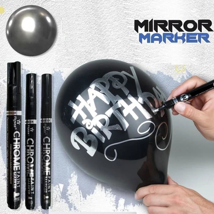 - Mirror Chrome Finish. This highly pigmented alcohol-based marker creates a high-gloss real mirror effect in almost all smooth surfaces like plastic and glass.